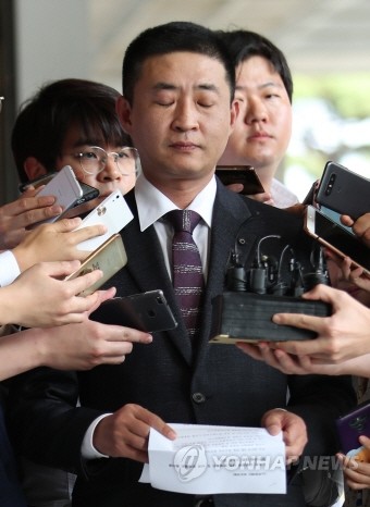 고(故) 노무현 전 대통령 아들 건호 씨가 25일 오후 서울 서초구 서울중앙지검에서 '부부싸움 끝에 권양숙 씨가 가출하고, 노 전 대통령이 스스로 목숨을 끊었다'는 글을 페이스북에 올린 자유한국당 정진석 의원에 대해 사자(死者) 명예훼손 혐의로 고소장을 제출하기 위해 민원실로 향하며 취재진 질문에 답하고 있다.