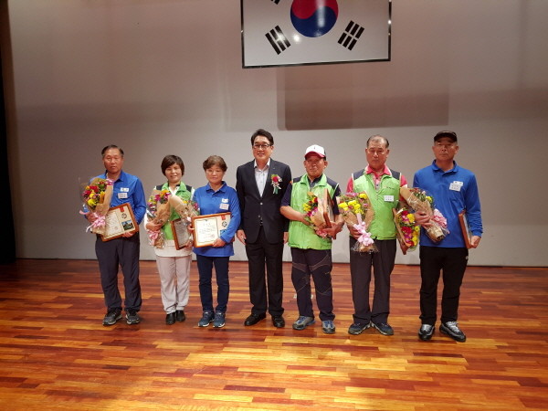 경기 양평군 바르게살기운동협의회는 지난 25일 ‘안전·윤리의식 함양 결의대회’를 개최하고, 바르게살기운동 확산과 군정 발전에 기여한 유공자들에게 표창을 수여했다. 사진은 김선교 군수(가운데)와 수상자들이 기념촬영을 하는 모습.(사진제공=양평군청)