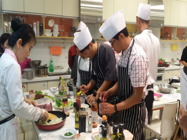 최근 서울 성동구는 직장인 남성이자 가장인 아빠들이 본인과 가족들을 위한 건강식을 만들 수 있도록 돕는 ‘아빠의 식탁’ 프로그램을 성황리에 마무리했다. 사진은 아빠의 식탁에 참여한 관계자들이 음식을 만들고 있는 모습.(사진제공=성동구청)