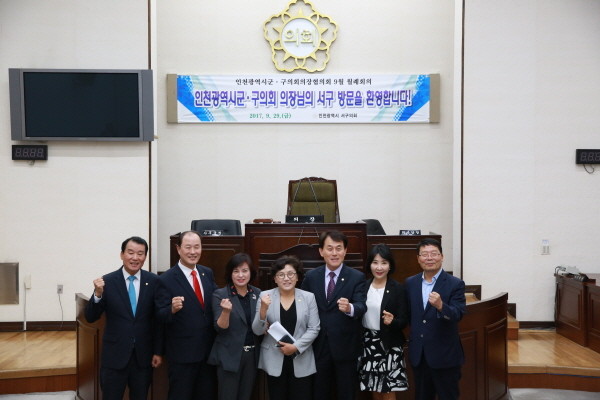 이번 9월 월례회의에는 의장협의회 회장인 윤재상 강화군의회 의장을 비롯해 중구 김철홍 의장, 동구 이정옥 의장, 연수구 이인자 의장, 부평구 임지훈 의장, 계양구 김유순 의장, 서구의회 심우창 의장, 옹진군 백동현 의장이 참석했다.