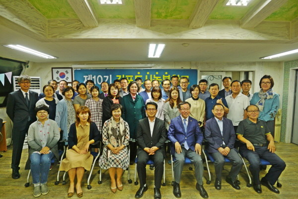 최근 경기 김포시농업기술센터와 경제정의실천시민연합 김포지부가 공동운영하는 '제10기 김포도시농부학교'가 34명의 수료생을 배출했다. 사진은 고근홍 소장과 수료생들이 기념촬영을 하는 모습.(사진제공=김포시청)