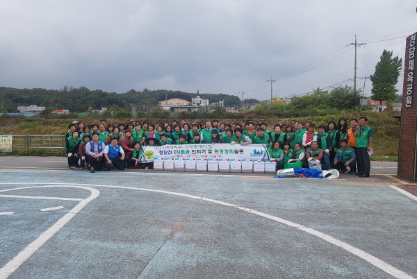 경기 양주시새마을부녀회는 지난 10일 청담천생태공원에서 ‘청담천 EM흙공 던지기 및 환경정화 활동’을 실시했다. 사진은 참여자들이 기념촬영을 하는 모습.(사진제공=양주시청)