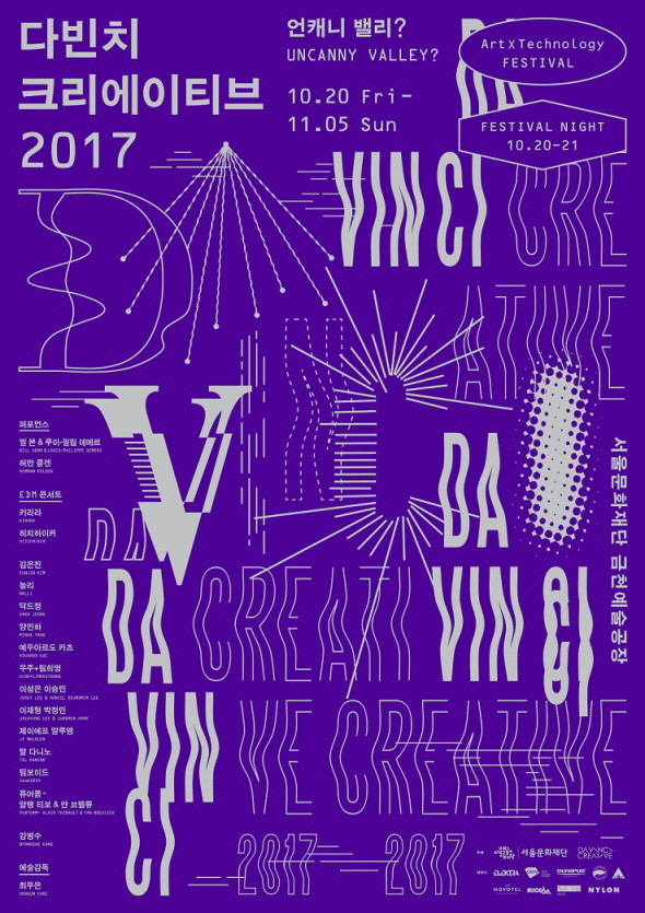 행사 구성은 ▲페스티벌 나잇: 오프닝 퍼포먼스, EDM 콘서트(10월20일 오후 6~10시) ▲전시: 다빈치 아이디어 공모 선정작품 및 초청작품 13점(10월20일~11월5일, 오전 10시~오후 6시(페스티벌 나잇 기간(20~21일)에는 오후 4시~10시) ▲ 강연: ‘인간과 기계의 관계를 다시 생각하다’(10월21일 오후 4~5시30분) ▲라운드 패턴 아트 워크숍(10월 20~21일 오후 4~8시)으로 구성됐다.