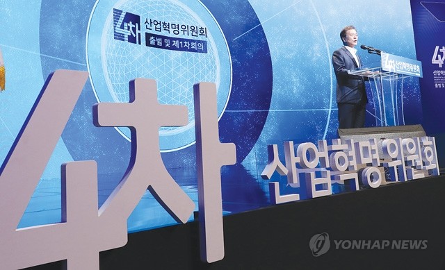 문재인 대통령이 11일 서울 상암동 에스플렉스센터에서 열린 4차산업혁명위원회 출범식 및 1차 회의에서 연설하고 있다.