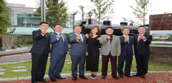 김규선 경기 연천군수는 지난 10일 연천역 일원에서 1983년 방송된 <KBS 이산가족상봉 생방송>의 세계기록유산 등재 2주년을 기념해 열린 <특집생방송, 만남의 강은 흐른다>에 참석했다. 사진은 방송 종료 후 김 군수(왼쪽에서 세번째)가 기념촬영을 하는 모습.(사진제공=연천군청)