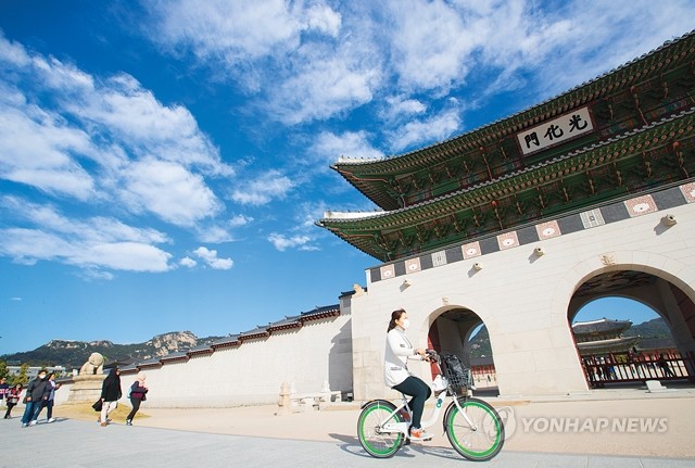 맑은 날씨를 보이는 15일 오전 서울 광화문 뒤로 푸른 하늘이 보인다.