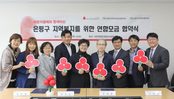 최근 서울 사회복지공동모금회(사랑의열매)가 은평구 서부장애인복지관에서 은평구지역사회보장협의체, 은평구사회복지협의회와 은평 지역의 사회복지시설의 프로그램 사업비와 소외계층지원을 위해 올해 11월 말까지 6000만원을 목표로 연합모금 협약을 맺었다.(사진제공=사랑의열매)