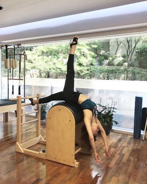 사진 속 이엘은 운동기구에 몸을 맡긴 채 다리를 쭉 펴고, 허리를 활 자 모양으로 구부려 요가 자세를 완성했다. 그는 편안한 표정으로 어려운 요가 자세를 가볍게 해냈다. 그는 요가로 완성된 탄탄하고 늘씬한 몸매를 과시해 눈길을 끌었다.
