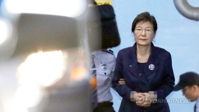박근혜 전 대통령이 구속 연장 후 첫 공판을 마친 16일 오전 서울중앙지법을 나서고 있다.