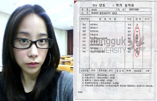 조민아는 과거 자신의 미니홈피에 ‘감사합니다’라는 제목의 글에 지난 학기 올 A+를 받은 성적표 사진과 장문의 글을 남겼다.
