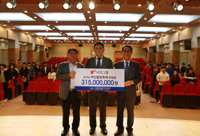 비엔그룹·대선주조는 지난 2005년 부산불꽃축제 첫 회부터 해마다 행사비용을 지원해 올해로 13번째 후원금을 전달했다.