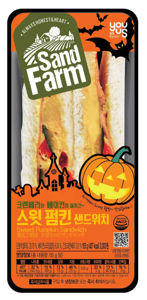 ‘스윗 펌킨 샌드위치’는 달콤한 단호박과 사과, 새콤한 크랜베리가 들어간 건강 샌드위치로 오는 31일까지 전국 GS25 편의점 냉장 코너에서 할로윈 데이 한정판 패키지로 판매된다.(가격 2000원)