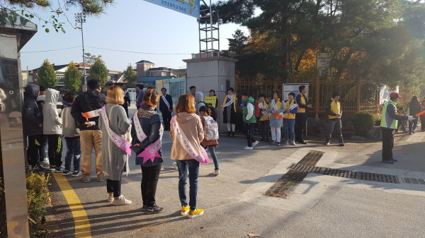 경기 포천시 포천동 청소년지도위원회는 지난 23일 포천초등학교 학생들의 등교시간에 맞춰 학교 정문에서 학생들을 대상으로 ‘학교폭력 예방 캠페인’을 실시했다. 사진은 지도위원들이 캠페인에 참여하고 있는 모습.(사진제공=포천시청)