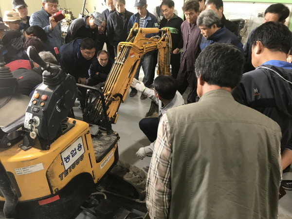 인천 강화군농업기술센터는 지난 24일 농업기계교육장에서 농업인이 자주 사용는 농업용 굴삭기에 대한 이론 및 실습교육을 실시했다. 사진은 참여자들이 교육에 집중하는 모습.(사진제공=강화군청)
