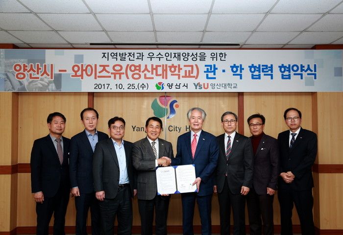 이번 협약식은 지역 우수인재 양성 등 다양한 분야에서 양 기관이 상호 협력체계를 구축하고 지역사회 발전에 기여하기 위해 마련됐다. 이번 협약에 따라 와이즈유는 내년 1학기부터 양산 시민이 편입할 경우 입학 당해 첫 학기 입학금과 수업료 전액을 지급한다.
