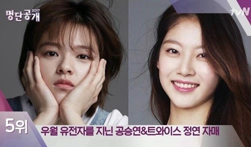 과거 방송된 케이블채널 tvN '명단공개 2017'에는 '가문의 영광! 연예계 금빛 족보' 명단이 공개됐다. 당시 방송에서 트와이스 정연, 공승연이 명단공개 5위를 차지했다.