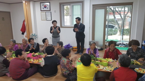경기 수원시 권선구 구운동은 지난 1일 늘품상담사회적협동조합 주관으로 지역내 경로당에서 저소득층 노인을 대상으로 '재능기부 심리치유 강좌'를 운영했다. 사진은 푸드테라피 강좌가 진행 중인 모습.(사진제공=권선구청)