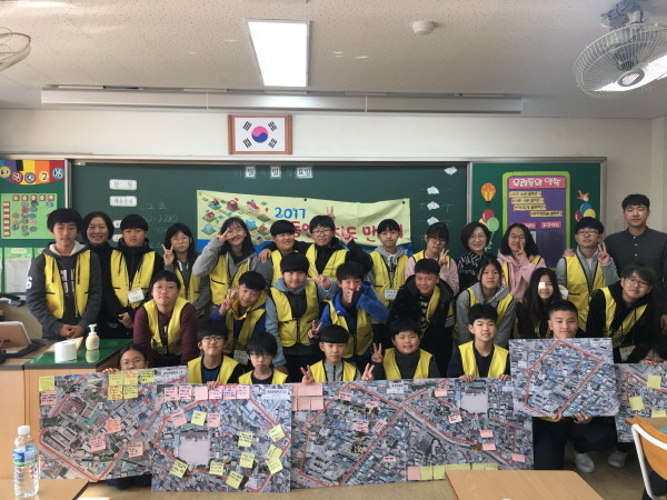 경기 포천초등학교는 지난 6일 6학년 학생 30여명을 대상으로 ‘2017 포천시 아동안전지도 제작사업’을 실시했다. 사진은 아동안전지도 제작에 참여한 학생들이 지도 제작을 마친 후 기념촬영을 하는 모습.(사진제공=포천시청)