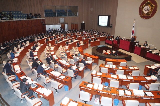 7일 오전 국회에서 열린 예산결산특별위원회 전체회의에서 정부의 공무원 증원 계획과 관련한 재정 소요 추계자료 제출 문제를 두고 정회를 촉구한 자유한국당 의원석이 비어 있다.
