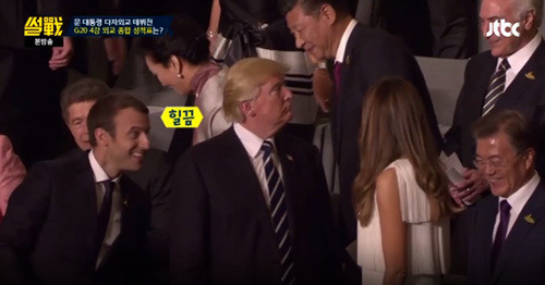 JTBC '썰전'에서는 지난 7월 G20 정상회담에 대해 다루며 트럼프 대통령의 돌발 악수를 다뤘다.