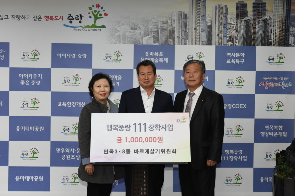 중랑구 면목3·8동 바르게살기위원회, ‘행복중랑 111 장학사업’에 장학금 기탁