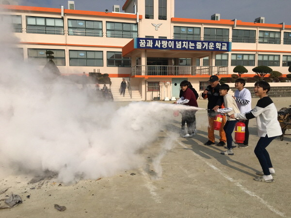 경기 이천소방서는 지난 7일 가산·나래초등학교에서 전교생을 대상으로 피난대피 및 소화기 사용법 등의 맞춤형 소방안전교육을 실시했다. 사진은 가산초등학교 학생들이 소화기 사용 실습을 하는 모습.(사진제공=이천소방서)