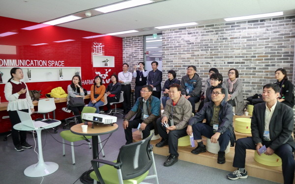 '스마트오피스'는 부서 간 벽을 없애고 개인간 칸막이를 낮춰 개방적인 공간으로 만들어 직급 구분없는 책상 배치로 자율적이고 수평적인 조직문화가 정착될 수 있도록 했다.