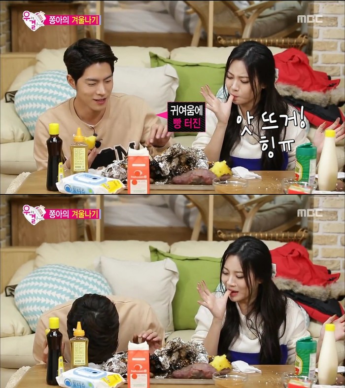 이어 유라가 구운 옥수수의의 은박지를 벗기는 순간 "앗 뜨거! 힝~"이라고 갑작스러운 애교를 했고, 이를 옆에서 보던 홍종현은 그대로 빵터지며 웃음을 참지 못하는 모습을 보였다.