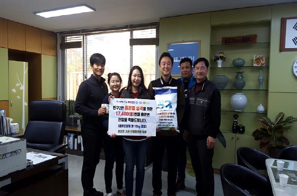 최근 경기 양평군 용문면은 박정호 부면장과 이경영 의용소방대장 등이 참석한 가운데 1만7400번째 전입 주민에게 축하 선물을 전달하는 ‘전입축하행사’를 개최했다. 사진은 축하행사 종료 후 관계자들이 기념촬영을 하는 모습.(사진제공=양평군청)