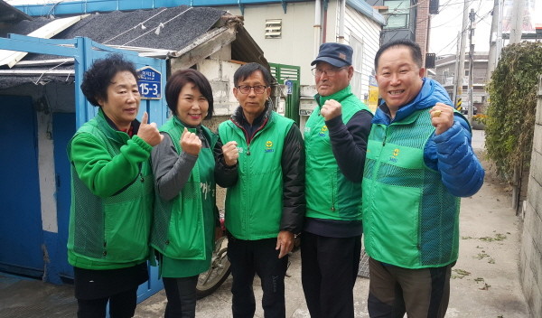 경기 안성시 안성2동 새마을지도자회는 지난 13일 열악한 환경에서 생활하는 복지사각지대의 저소득 취약계층 가구를 대상으로 도배·장판을 후원했다. 사진은 참석한 새마을지도자회 관계자들이 도배·장판 후원활동 후 '파이팅'을 외치는 모습.(사진제공=안성시청)