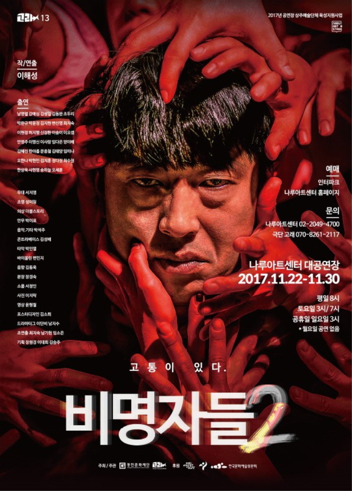 ‘비명자들’을 소재로 만든 3부작 중 가장 먼저 무대에 오르는 <비명자들2>는 중국 군인들에게 무고하게 죽임을 당하는 티베트인들의 살육 현장을 목격한 보현과 비명자를 목을 잡아 꺾어 파사하는 요한, 파사의 현장을 따라다니는 기자 세은에 대한 이야기로 ‘고통’을 주제로 한 한편의 대서사시다.