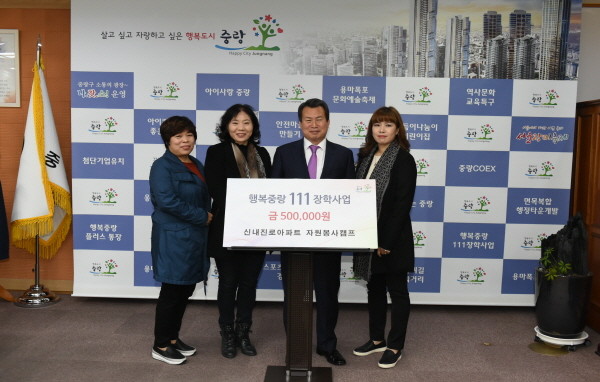 신내진로아파트 자원봉사캠프, ‘행복중랑 111 장학사업’에 장학금 기탁