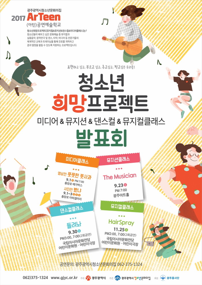 광주광역시청소년문화의집은 8년째 문화예술을 진로로 삼은 어린이들을 대상으로 뮤지컬, 뮤지션, 댄스, 미디어 분야의 전문적인 교육과 체계적 트레이닝, 진로 지원 등 통합적 시스템을 제공하는 ‘청소년희망프로젝트’를 진행하고 있다.