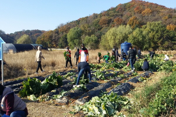 인천시 계양구자원봉사센터, 저탄소 녹색성장 주말가족농장 ‘G패밀리봉사단’ 배추 수확
