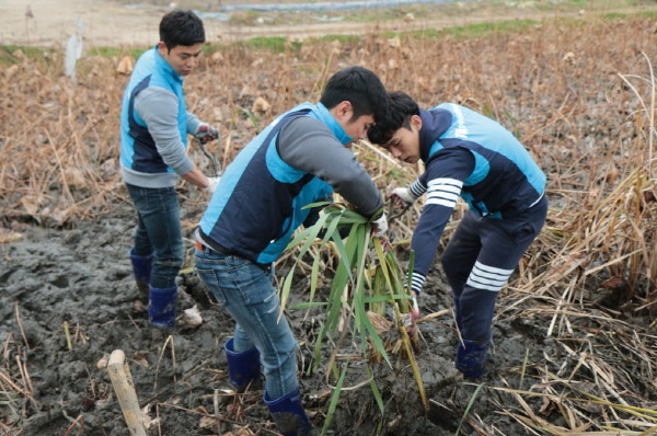 경기 양주시시설관리공단은 최근 1사1촌 자매결연을 맺은 양주시 장흥면 ‘천생연분마을’을 방문해 공단 ‘디딤돌 봉사단’ 출범식을 실시하고 농촌봉사활동을 전개했다. 사진은 참여자들이 열심히 밭을 정리하는 모습.(사진제공=양주시시설관리공단)