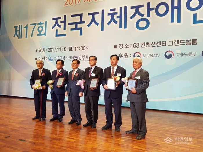 [신안=황승순 기자] 전라남도 지체장애인 협회 김기철 신안군 지회장이 지난 10일 서울 여의도 63컨벤션 그랜드볼룸에서 사단법인 한국지체장애인협회에서 주최하고 보건복지부·노동부·KBS 후원으로 개최한 2017년 지체장애인의 날을 맞아 상곡 인권상을 수상하는 영예를 안았다.