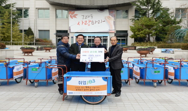 동대문구, 폐지 수거 노인들에 '사랑의 손수레' 20대 기증