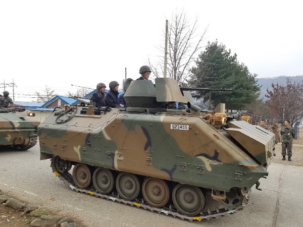 경기 동두천시 소요동 사회단체협의회와 소요동주민센터에서는 지난 22일 지역내 26사단 125기보대대 제1125부대를 방문해 장병들을 격려하고 부대에 필요한 물품과 간식을 전달했다. 사진은 참여자들이 전차에 탑승해 보는 모습.(사진제공=동두천시청)