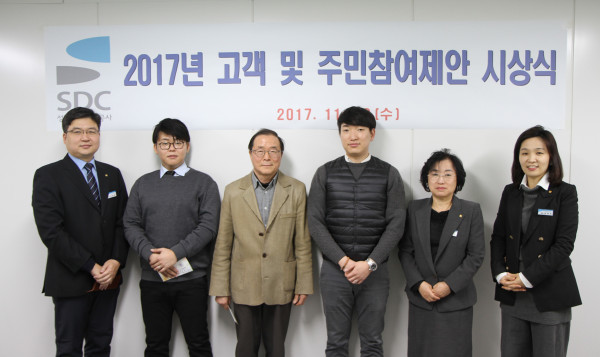 최근 경기 성남도시개발공사가 우수고객제안에 대한 제안심사위원회의 엄격한 심의절차를 걸쳐 선정된 우수고객제안자에 대해 ‘고객 및 주민참여제안 시상식’을 실시했다. 사진은 시상식 참여자들이 기념촬영을 하고 있는 모습.(사진제공=성남도시개발공사)