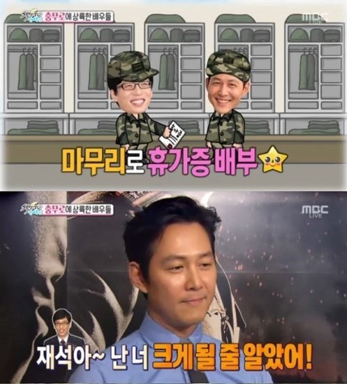 당시 방송에서 이정재는 "유재석과 군대 동기다. 전우다"라고 밝히며 "우리가 문화선전대 준비도 하고 실제 예하 부대 공연도 같이 다녔다"고 말해 주위를 놀라게 했다. 이정재는 "그 친구가 기획, 대본, 연출, 출연을 했다. 마지막에 휴가증까지 다 전달했다"고 털어놨다.