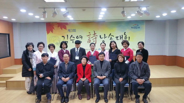 서울 도봉구가 주최하고, 도봉문화원이 주관하는 ‘제3회 김수영 시(詩) 낭송 대회 본선·시상식’이 지난 25일 김수영문학관 강당에서 개최됐다. 사진은 본선·시상식 후 이동진 구청장을 비롯한 수상자들이 기념촬영을 하는 모습.