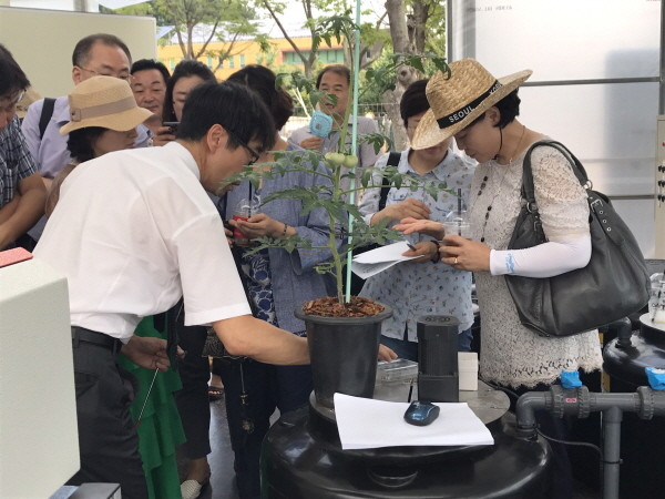 교육에 참가한 학생들은 작물 내 물의 이동속도와 비료 농도 등을 실시간 계측해 작물이 최상의 상태로 자랄 수 있게 돕는 생체정보센서의 원리를 배웠다.
