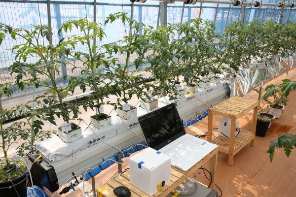 | ▲ 세계 최초로 나노기술을 적용해 작물의 상태를 확인하고 작물을 최상의 상태로 재배할 수 있는 리얼스마트팜의 토마토 재배 모습. | ||