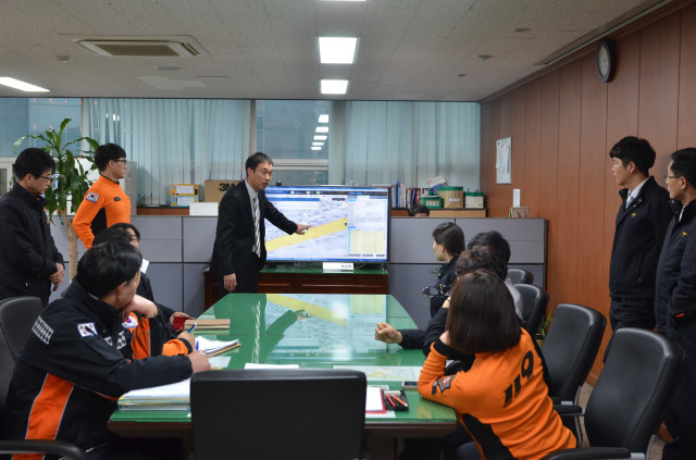서울 영등포소방서는 지난 30일 소방서 상황실에서 소방서 행정직원을 대상으로 소방안전지도 조작능력 향상을 위한 교육을 실시했다. 사진은 소방서 관계자들이 소방안전지도 조작과 관련된 교육을 받고 있는 모습. (사진제공=영등포소방서)