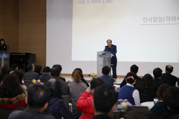 박홍섭 마포구청장이 지난 4일 마포중앙도서관 6층 세미나실에서 열린 '찾아가는 동주민센터 성과공유대회'에 참석해 인사말을 하고 있다. 이날 행사는 공무원과 지역주민 등 약 200여명이 참석한 가운데 '마포, 찾동으로 꽃피다'라는 슬로건을 내걸고 진행됐다. (사진제공=마포구청)