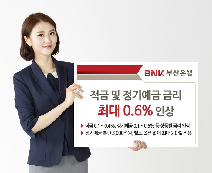 [부산=최성일 기자]BNK부산은행(은행장 빈대인)은 한국은행의 기준금리 인상에 맞춰 12월 6일부터 적금과 정기예금 상품의 금리를 최대 0.60%까지 인상한다고 5일 밝혔다.
