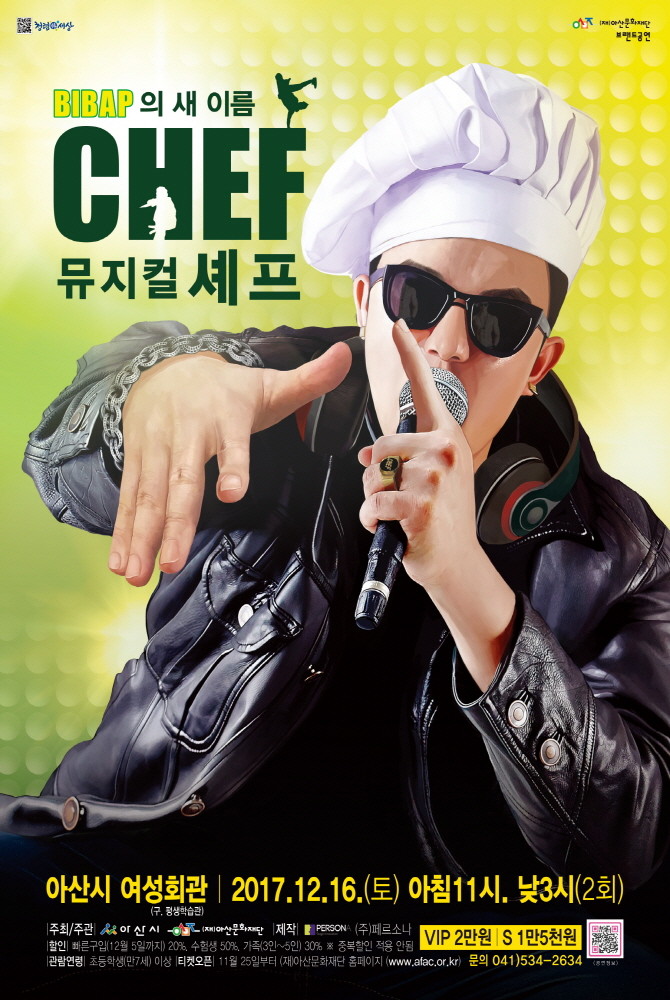 뮤지컬 '셰프'는 일식, 중식, 한식 등 다양한 요리를 선보이는 레스토랑 주방을 배경으로 자신의 요리가 최고라고 생각하는 두 셰프가 요리 대결에서 비트박스와 비보잉 등을 선보이며, 관객 참여형 공연으로 진행된다.