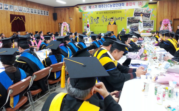 경기 여주시는 지난 6일 시 농업기술센터 대회의실에서 원경희 시장을 비롯한 농업 관련 기관·단체장, 농업인대학 총동문회 임원, 졸업생 가족 등이 참석한 가운데 ‘제16기 여주21C농업인대학 졸업식’을 개최했다. 사진은 연단에 오른 원 시장이 축사하고 있는 모습,(사진제공=여주시청)