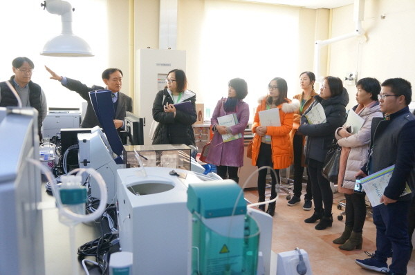 한국농수산식품유통공사 aT센터가 주최로 경기 양평군을 방문한 중국 유아식품바이어 21개사는 지난 6일 양평군농업기술센터의 토양분석·미질분석실과 양평공사의 친환경 미곡처리장(RPC), 친환경쌀과자 생산현장 등을 방문했다. 사진은 바이어들이 시설을 견학하는 모습.(사진제공=양평군청)