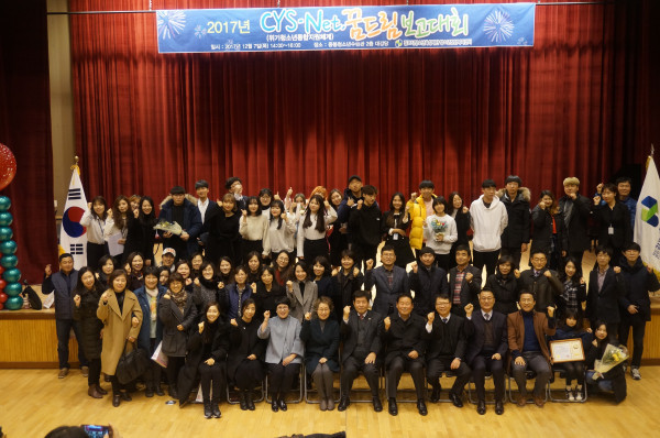 (재)김포시청소년육성재단에서는 최근 김포중봉청소년수련관 대강당에서 ‘2017년 청소년상담복지센터 CYS-Net, 꿈드림 보고대회’를 개최했다. 사진은 행사 참여자들이 기념촬영을 하고 있는 모습. (사진제공=김포시청)